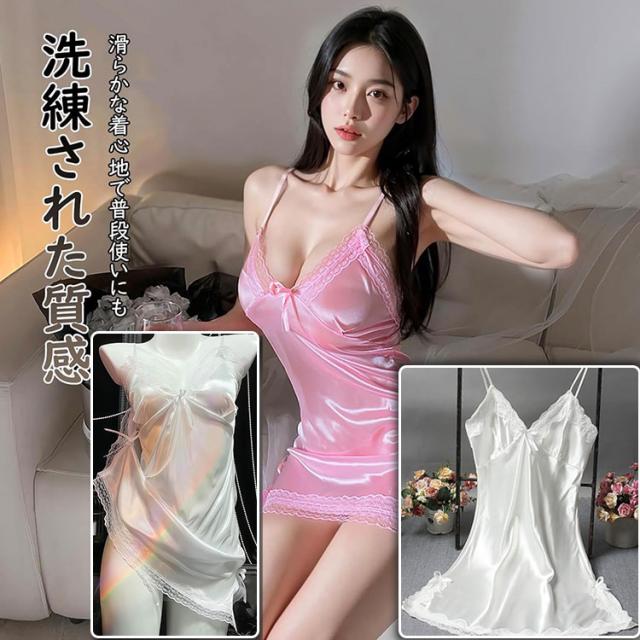 | 商品説明 | ナイトウェアとしても、特別な日のランジェリーとしても 普段使いできるセクシーさ なめらかで肌触りの良いサテン生地 テロンと落ち感のある素材でストレスフリー チクチクしにくいレース仕様 バストラインを美しく見せるVネック さりげないレースで色っぽさプラス 体のラインをきれいに見せるシルエット 締め付け感なしでリラックス 寝返りしても快適 軽くてさらっとした着心地 |
