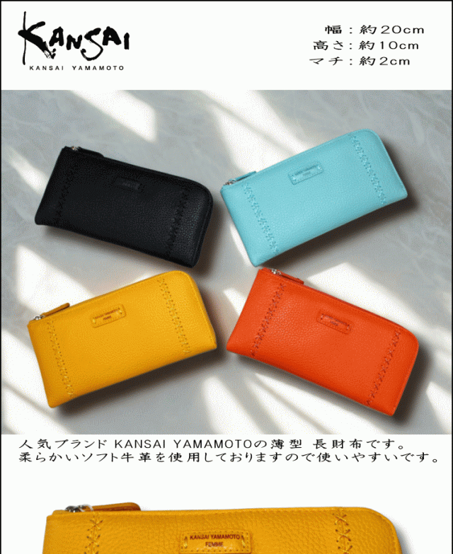 財布 KANSAI YAMAMOTO 山本寛斎 ヤマモトカンサイ 財布 レディース 薄型 薄い 本革 長財布 L字ラウンドファスナー小銭入れ付き MJ6235 イエロー色 ミント色 オレンジ色 ブラック色