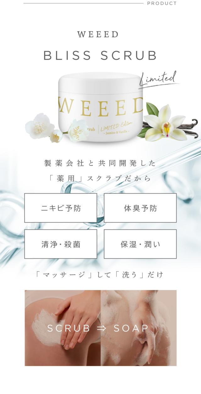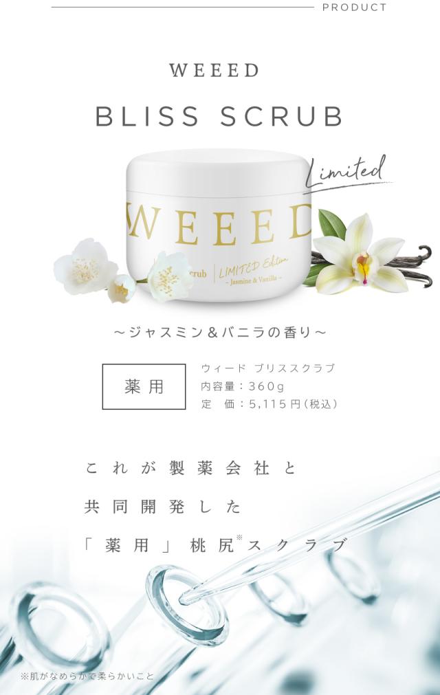WEEED ブリススクラブ 360g ジャスミン&バニラの香り 薬用 ボディスクラブ ボディケア ボディースクラブ ボディソープ お尻 背中 デリケートゾーン vio ニキビ 黒ずみ ザラつき におい 保湿 ニキビ対策 ギフト プレゼント 【送料無料】