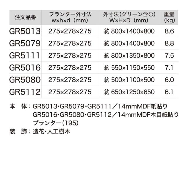 ※グリーンは造花の為、屋内設置でも直射日光や高温により、変色劣化する場合がございます。