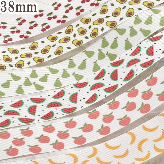 当店オリジナルの手作りプリントリボンです。フルーツをテーマに、チェリー・スイカ・ピーチ・バナナ・梨・アボカドなどをモチーフにした、表情豊かな6種類のデザインが登場しました。シンプルな構成ながら、組み合わせるたびに楽しさが広がるポップな仕上がり。ころころと転がるような食べ物柄が、作品に明るく元気な雰囲気を添えてくれます。ヘアアクセサリーや布小物のポイントをはじめ、季節のフルーツや食べ物をイメージしたハンドメイド作品づくりにおすすめのリボンです。