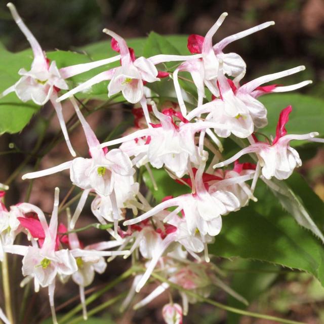 中国イカリソウと日本イカリソウの交配種。紅白の源平咲きがとっても美しい、希少品種です。メギ科。