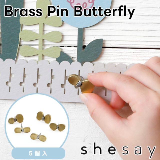 【shesay】壁にとまっているようなブラスで出来た飾りピン バタフライ 5個入 305143【志成販売 インテリア 文具 壁面装飾 飾りプッシュピン プッシュピン 画びょう 画鋲 押しピン プッシュピン 蝶々 バタフライ バレンタイン ホワイトデー 母の日 父の日 クリスマス xmas】
