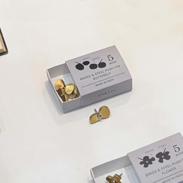 真鍮素材でかたどったチョウチョのモチーフが、まるで壁にとまっているような愛らしい押しピンです。