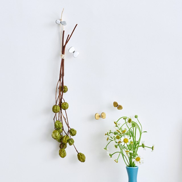 真鍮素材でかたどったチョウチョのモチーフが、まるで壁にとまっているような愛らしい押しピンです。 |