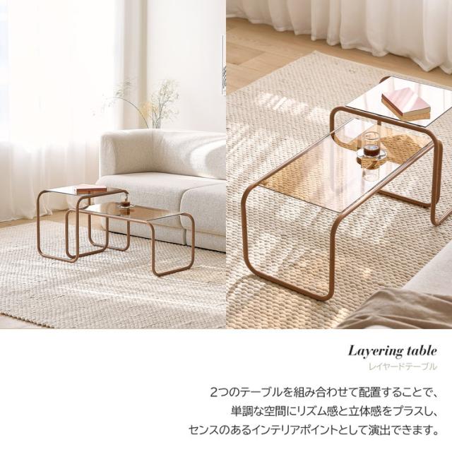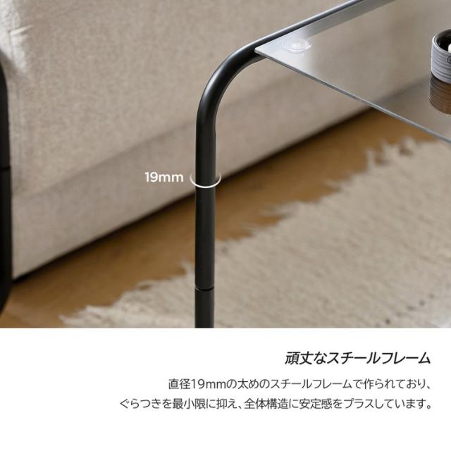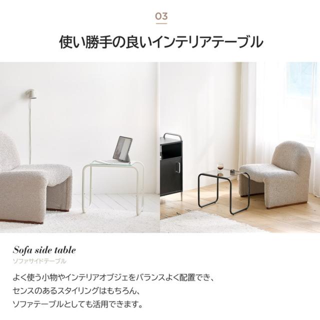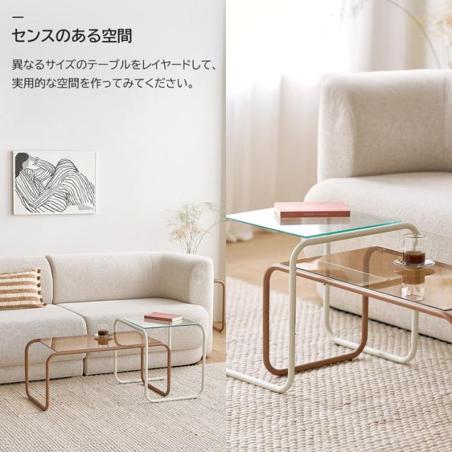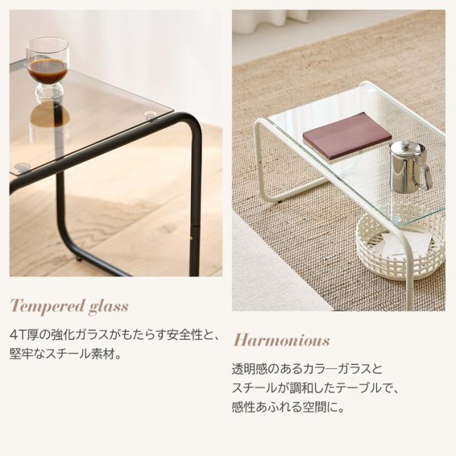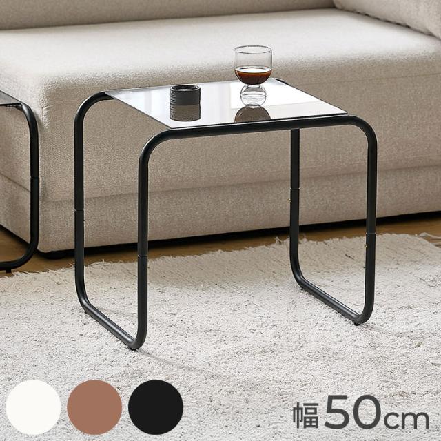 roomnhome ガラス サイドテーブル 幅50 テーブル スチール ミッドセンチュリー ダイニングテーブル センターテーブル 机 デスク ソファテーブル リビングテーブル おしゃれ 棚付き【送料無料】