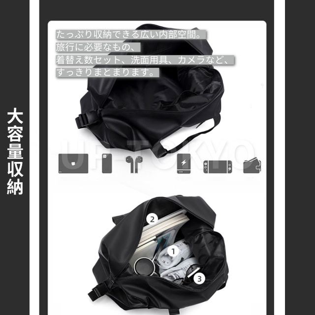 ・手持ち、ショルダー、斜め掛けとして3WAYで使えます。 ジム、ショッピングなど普段使いはもちろん、男女問わず幅広く使えるライトバッグです。