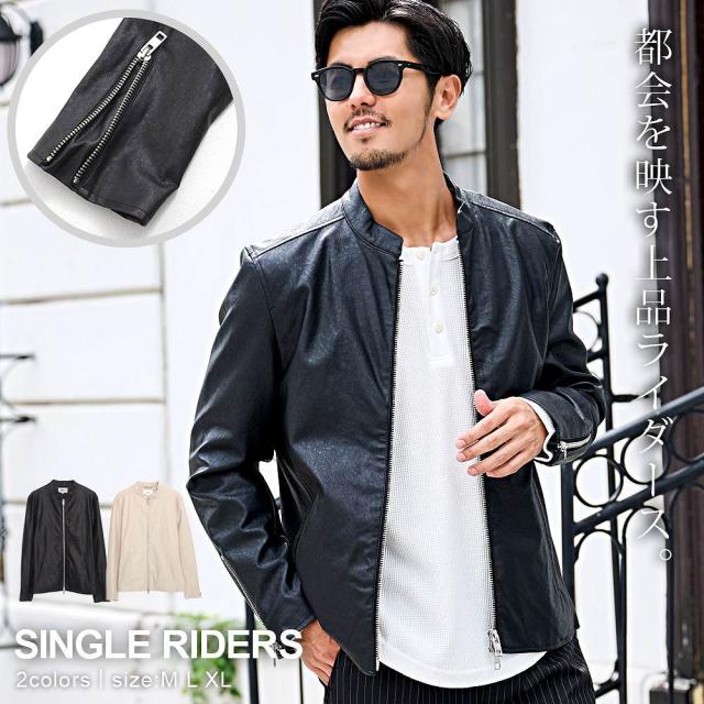 レザージャケット メンズ アウター シングルライダース ライダースジャケット PUレザー フェイクレザー ブルゾン ブラック ベージュ 黒 シンプル 無地 おしゃれ CavariA 大人 20代 30代 40代 50代 ちょいワル ユニセックス 男性 男 服 秋 冬 秋冬 ファッション[CAHP25-52]