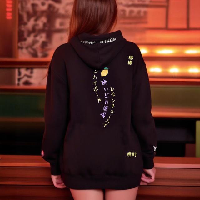 呑んべえの定番「レモンサワー」を大胆にデザインした、遊び心あふれるグラフィックプルオーバーパーカーが登場。