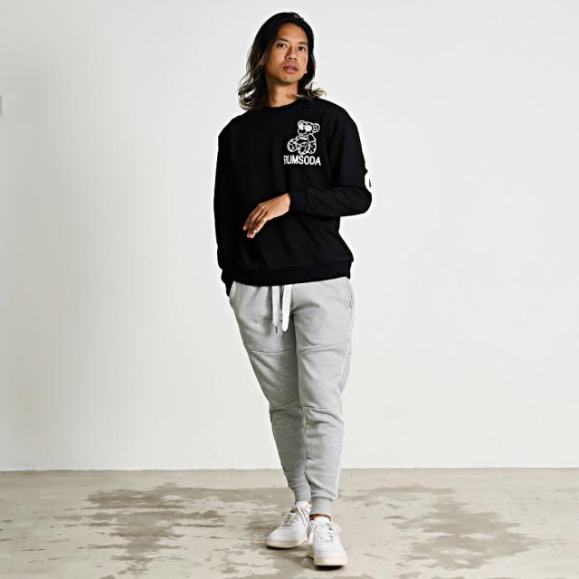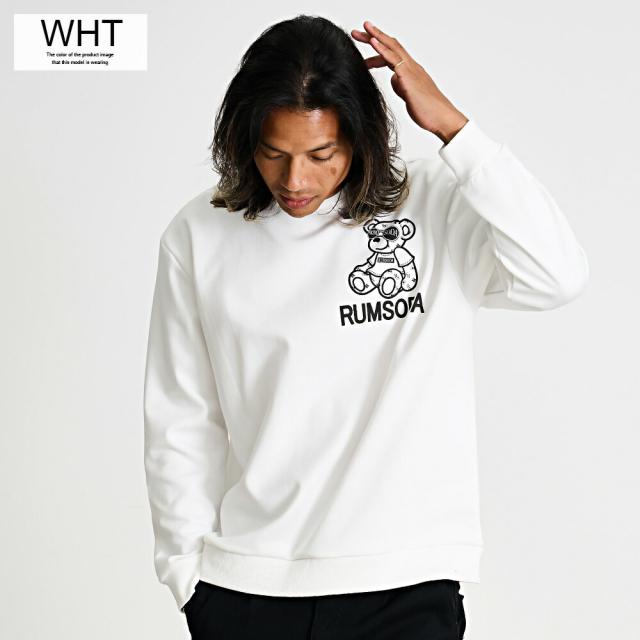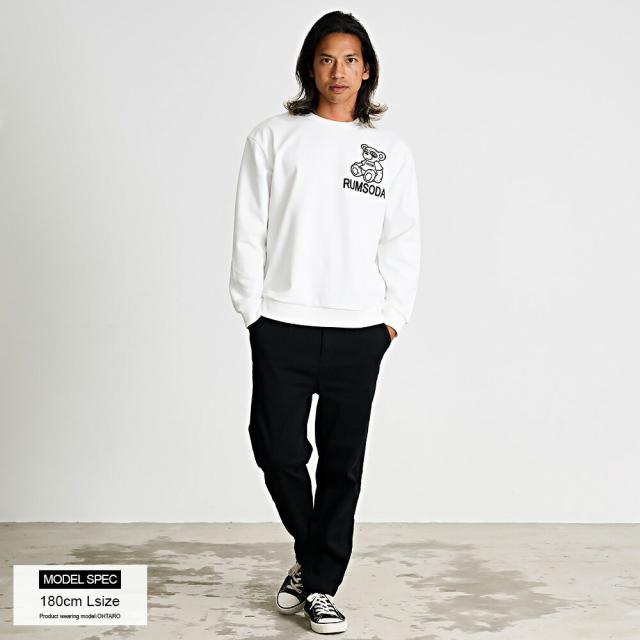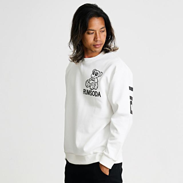 トレーナー メンズ ブランド ベア クマ くま 刺繍 クルーネック スウェット プルオーバー 長袖 ダブルフェイス ツイル アップリケ カジュアル ストリート ファッション 大人 春 秋 秋服 冬 冬服 LL XL L M 白 ホワイト 黒 ブラック RUMSODA ラムソーダ 男性 男 ちょいワル 20代 30代 40代 50代 メンズファッション 東京 プレゼント 誕生日 記念日 贈り物 ギフト配送について