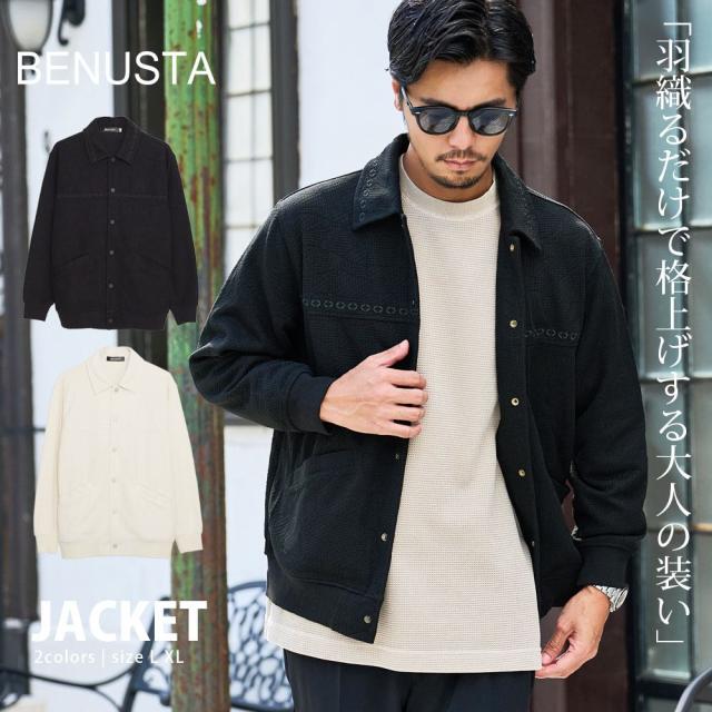 ジャケット メンズ アウター ブランド ブルゾン ジャガード 羽織り ジャンバー 防寒着 立体感 上品 きれいめ カジュアル 大人 上品 きれいめ シンプル BENUSTA ベヌスタ 大人 20代 30代 40代 50代 ちょいワル ユニセックス 男性 男 服 秋 冬 秋冬 ファッション[BENU25a-025]