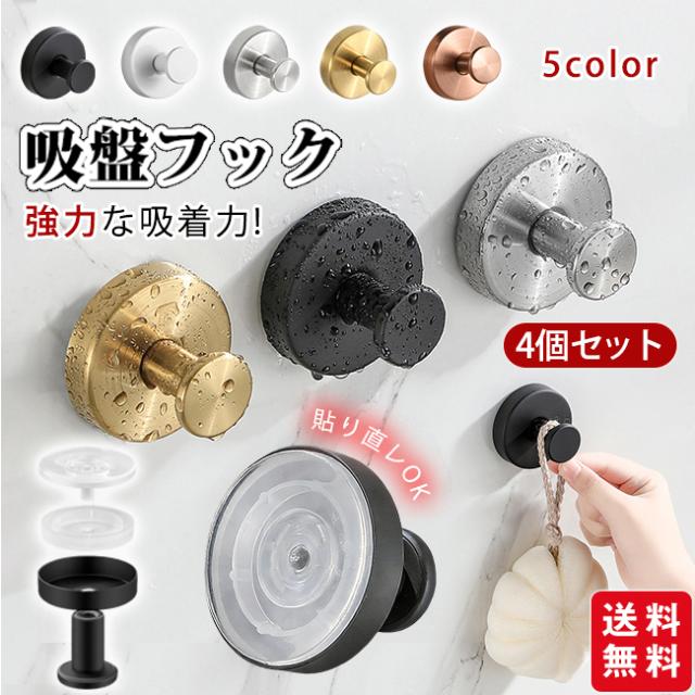 【 30% オフクーポン配布中】新作 吸盤フック 4個セット 強力 おしゃれ フック 壁 吸盤 穴あけない 超強力 ステンレス キッチン お風呂 バスルーム 浴室 壁掛け はがせる 強力吸着 繰り返し使える 取り付け簡単 穴あけ不要 吸着フック