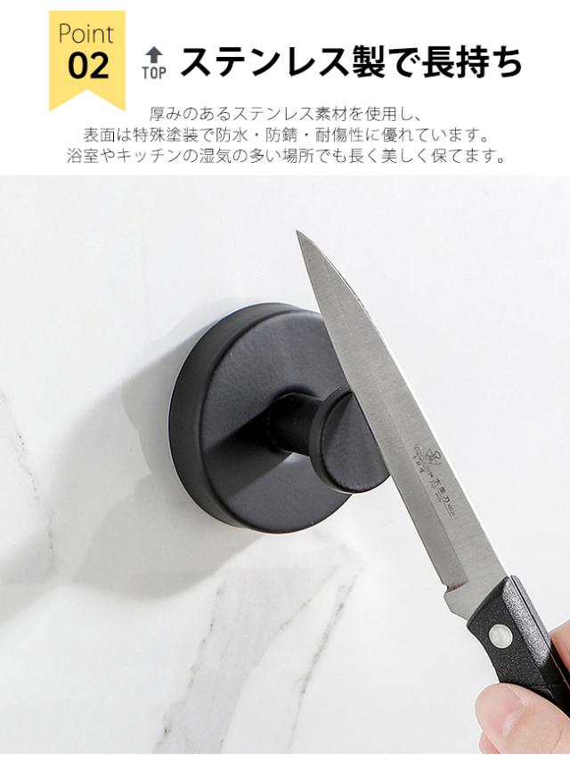 ・キッチンのフライパン収納から、バスルームのタオル掛け、玄関の鍵掛けまで。水周りはもちろん、リビングや寝室のインテリアとしても映えるデザイン。賃貸住宅でも穴をあけず、あらゆる生活シーンで頼りになる、一枚の強力フック。