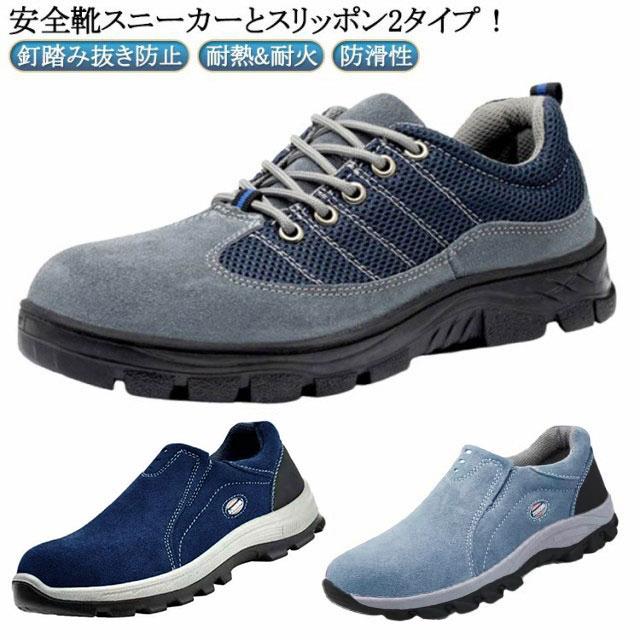 安全靴 スニーカー スリッポン メンズ レディース 紐なし あんぜん靴 防災靴 軽量 作業靴 踏み抜き防止 耐熱 耐火 鋼先芯入り 通気性 男女兼用 作業 安全シューズ おしゃれ 滑り止め 耐摩耗 蒸れない 撥水性 つま先保護 大きいサイズ 23.5-28cm
