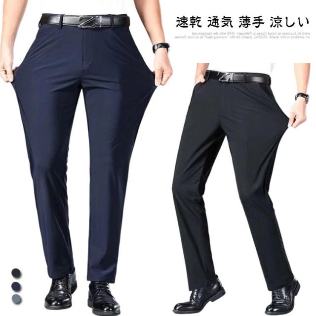 春 アイスシルクパンツ 接触冷感 イージーケア ストレッチ ビジネスパンツ ロングパンツ 涼しい ノーアイロン スラックス 薄手 ウォッシャブル 紳士 ズボン 速乾 スーツパンツ 通勤 通気 スラックス 夏 仕事着 無地 ボトムス 春服 夏服 秋服