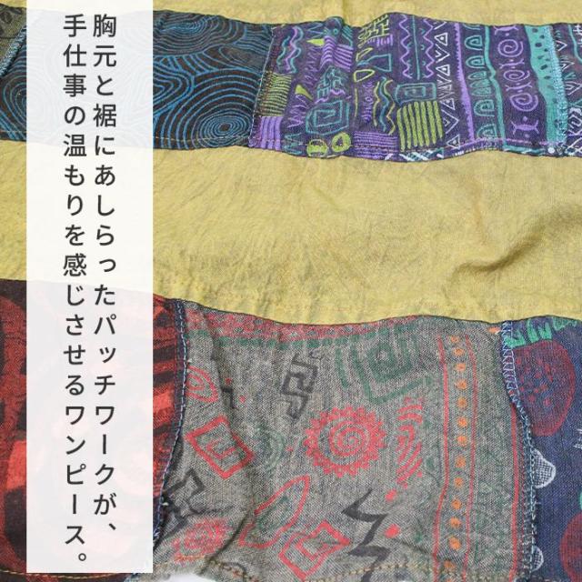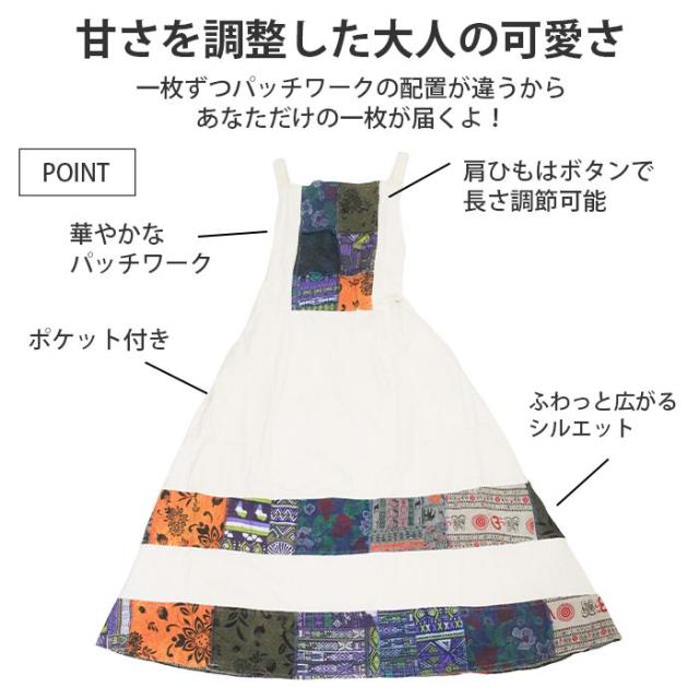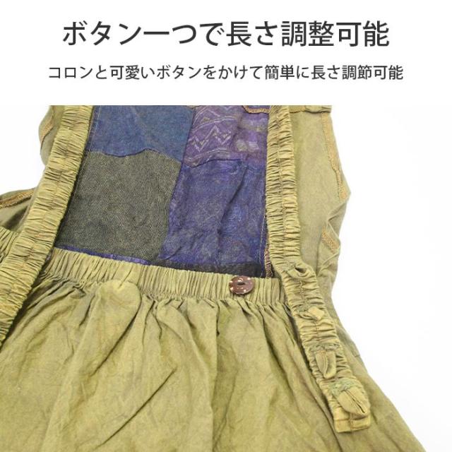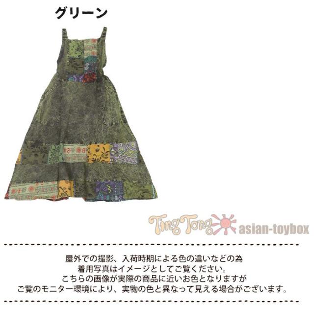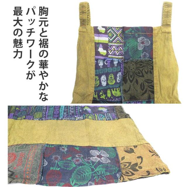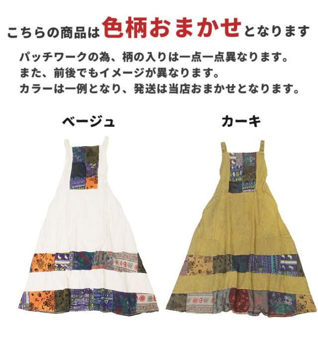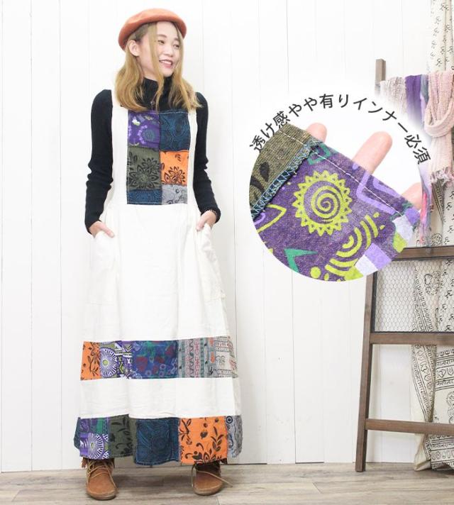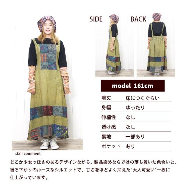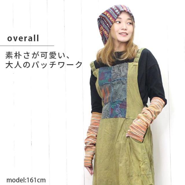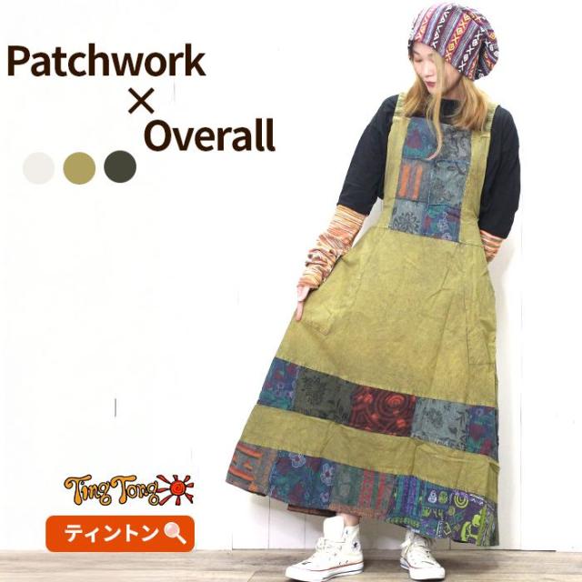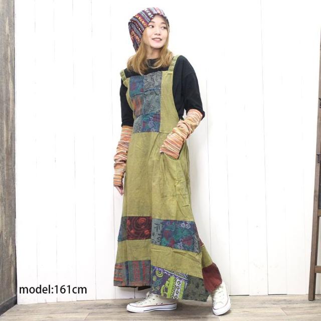 ワンピース サロペット スカート ロング丈 マキシ丈 【SPT】パッチポイントオーバーダイワンピ パッチワーク ガーリー おしゃれ ゆったり 重ね着 レイヤード
