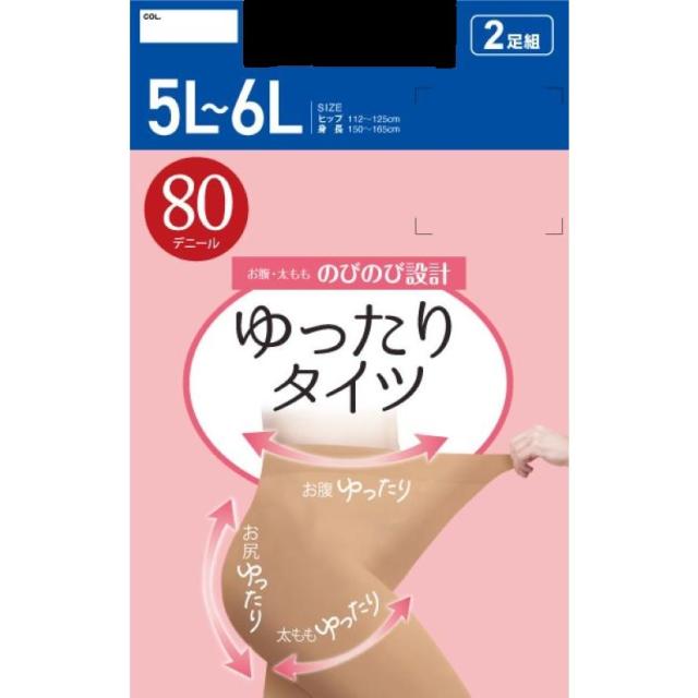 5L・6L対応の大きいサイズタイツ2足組。80デニールです。ゆったり快適な履き心地で、毎日の通勤やお出かけに活躍します。