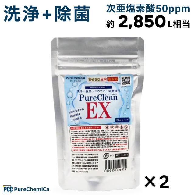 2点セット ピュアクレンEX 除菌洗浄剤 100g 次亜塩素酸水 生成パウダー 微発泡タイプ タンパク質・油分分解 洗浄+除菌 業務用 日本製