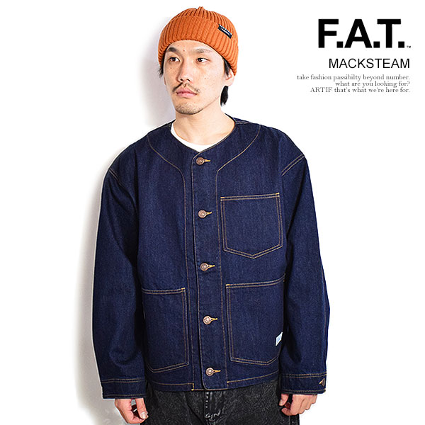 FAT エフエーティー MACKSTEAM メンズ ジャケット デニムジャケット ノーカラージャケット ビッグシルエット 送料無料 atfjkt