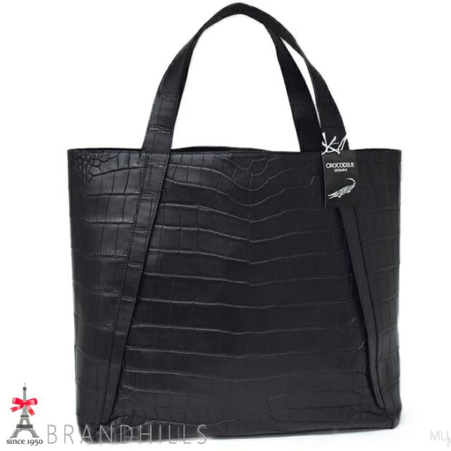 クロコダイル オープントートバッグ メンズ レディース ブラック マット加工 新品