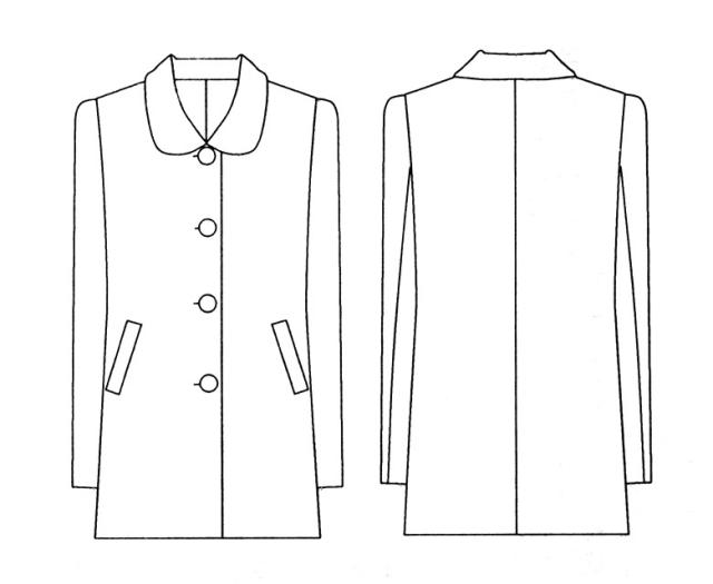 ショールカラー / ハーフコート / 前ボタン開き(くるみボタン) / 前側左右ポケット / 肩パッドなし / 裏地あり(総裏)