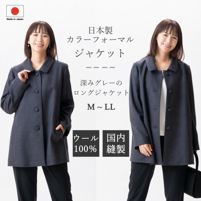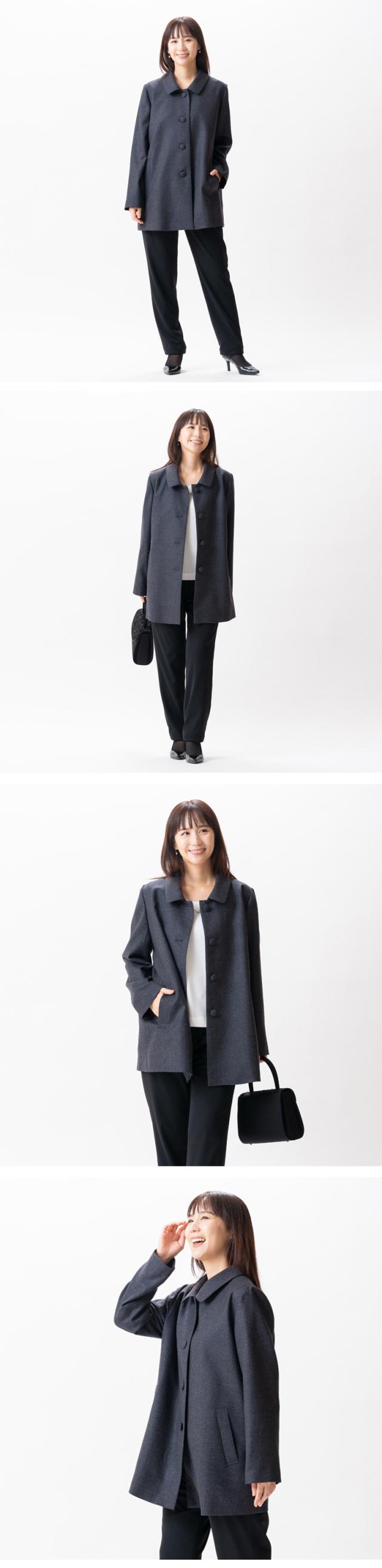 ウール100% ロング丈ラウンド衿ジャケットにもなります。 すっきり ゆったり 完全国内縫製 送料無料 弔事 慶事 礼装 20代 30代 40代 50代 60代のミセスやママに最適です
