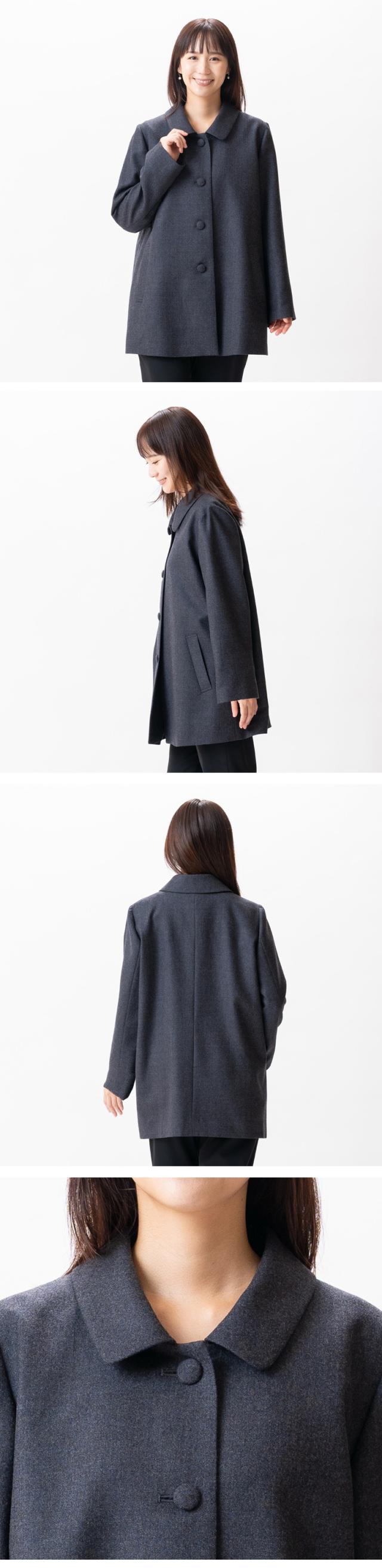 2026年冬物新発売 日本製 ウール100% BI10014 グレー ハーフ丈ステンカラーコート 婦人 入園式 入学式 卒園式 卒業式 七五三 お宮参り カジュアル