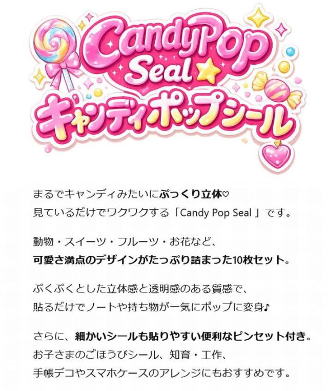 【超お得な10枚シート/ピンセット付き】Candy Pop Seal シール 3Dシール NEKS 7986571 ぷくぷくシール デコシール キャンディーポップシール 可愛いステッカー 福袋 デコ 手帳 知育 送料無料