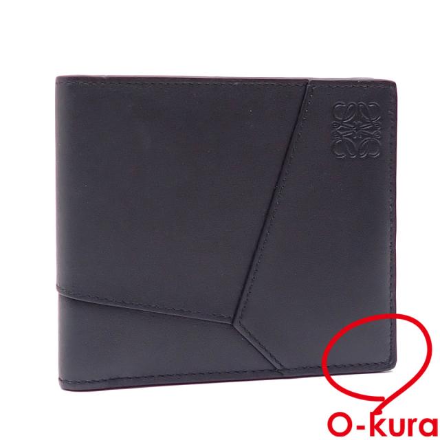 中古 ロエベ 二つ折り 札入れ パズル バイフォールド ウォレット メンズ ブラック レザー C510302X16