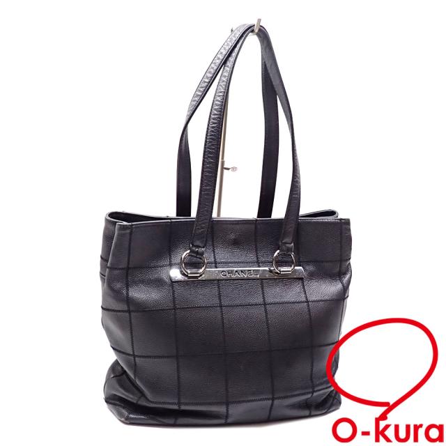中古 シャネル トートバッグ チョコバー レディース ブラック ソフトキャビアスキン