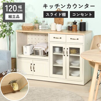 キッチンカウンター ナチュラル×ホワイト 幅120cm 送料無料