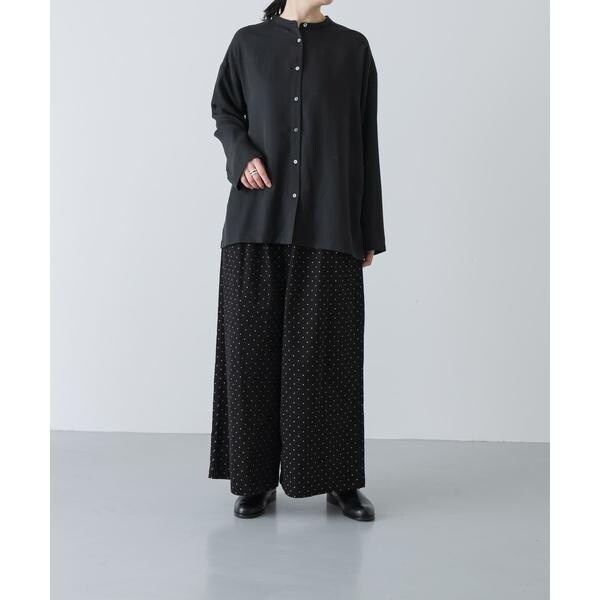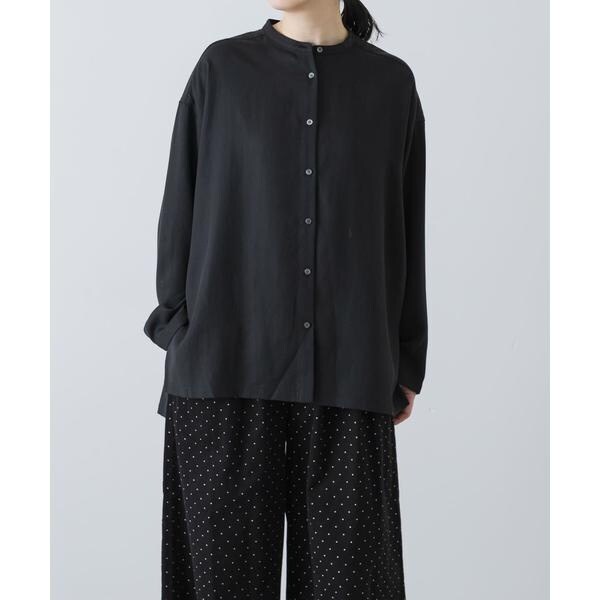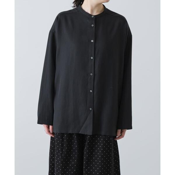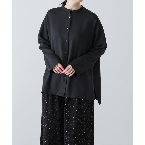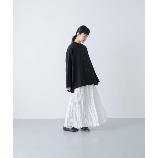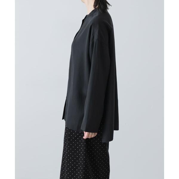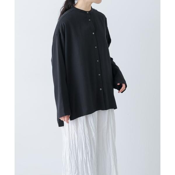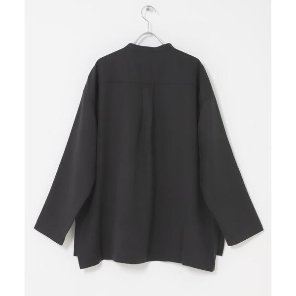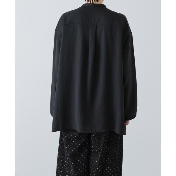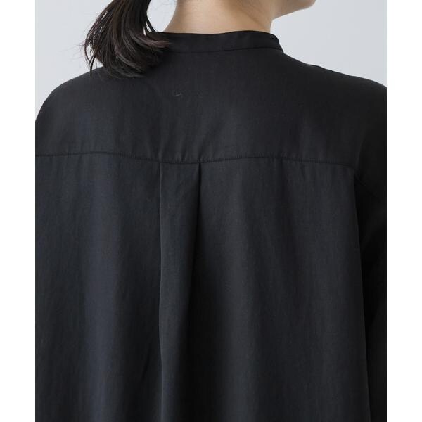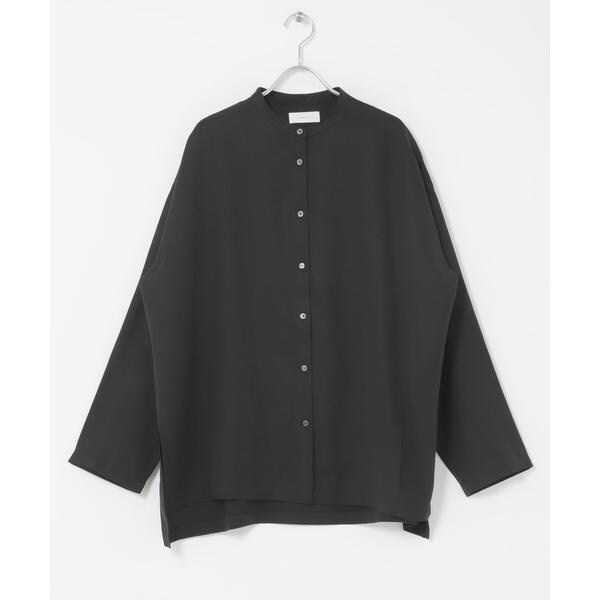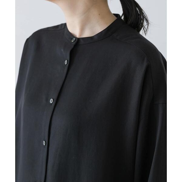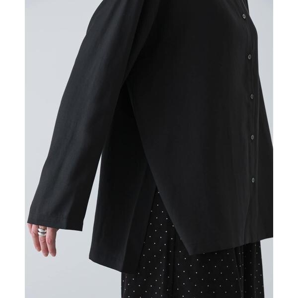 落ち感のあるとろみ生地がスッキリとした印象を叶える1枚。ワイドシルエットとコンパクトな首元が上品カジュアルを演出しています。身幅はゆとりがあり、上半身のラインを拾わない絶妙なバランスに仕上げました。カフスが無い袖のデザインがミニマルなムード。両サイドにはスリット入りでさり気ない前後差もアクセントになっています。日常にもお仕事にもシーンを問わず活躍する優秀な一品。そのままではもちろん、ベストやカーディガンを重ねたり様々なスタイリングをお楽しみいただけます。