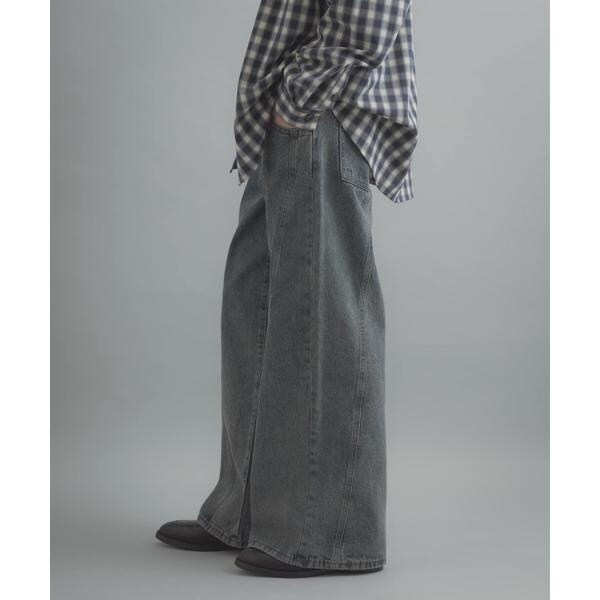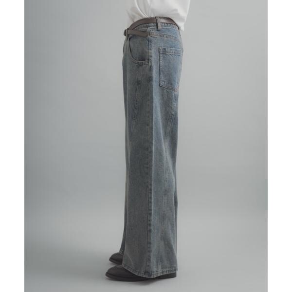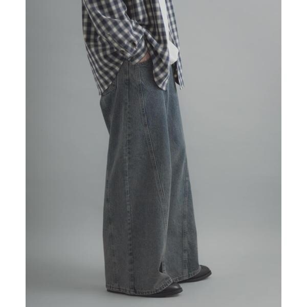 【ルーズなのに洗練。ハリ感素材で仕上げたパネルデザインワイドデニム】