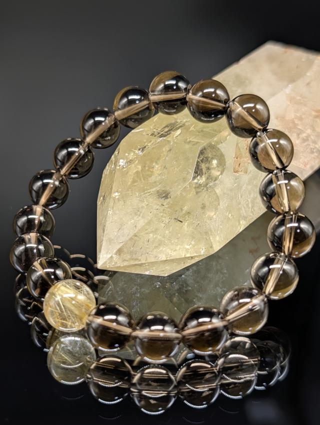 潜在能力を引き出すスモーキークォーツがルチルクォーツの金銭運を現実化するサポートをします。