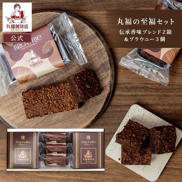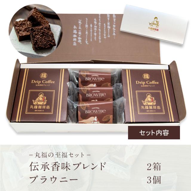 バレンタイン 帰省土産 手土産 寒中見舞い 贈答 創業90年 伝承香味ブレンド 珈琲 ドリップコーヒー 2箱 ブラウニー 3個入 高級ギフト スイーツ 焼き菓子 お取り寄せ 常温保存 公式 丸福珈琲店