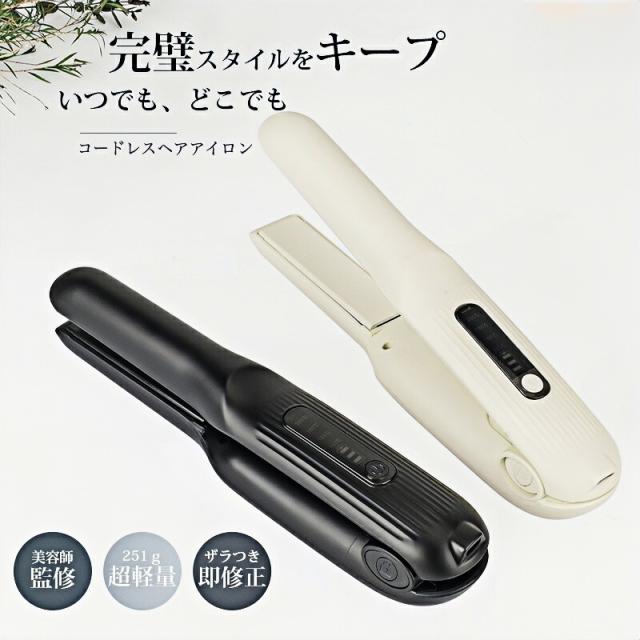 【最新版】ヘアアイロン コードレス USB充電式 ワイヤレス 4段階温度調節 ヘアアイロン コードレス ミニヘアアイロン下 3way カール&ストレート&前髪 大容量 MAX200℃ 自動電源OFF 急速加熱 温度表示 コンパクト 軽量