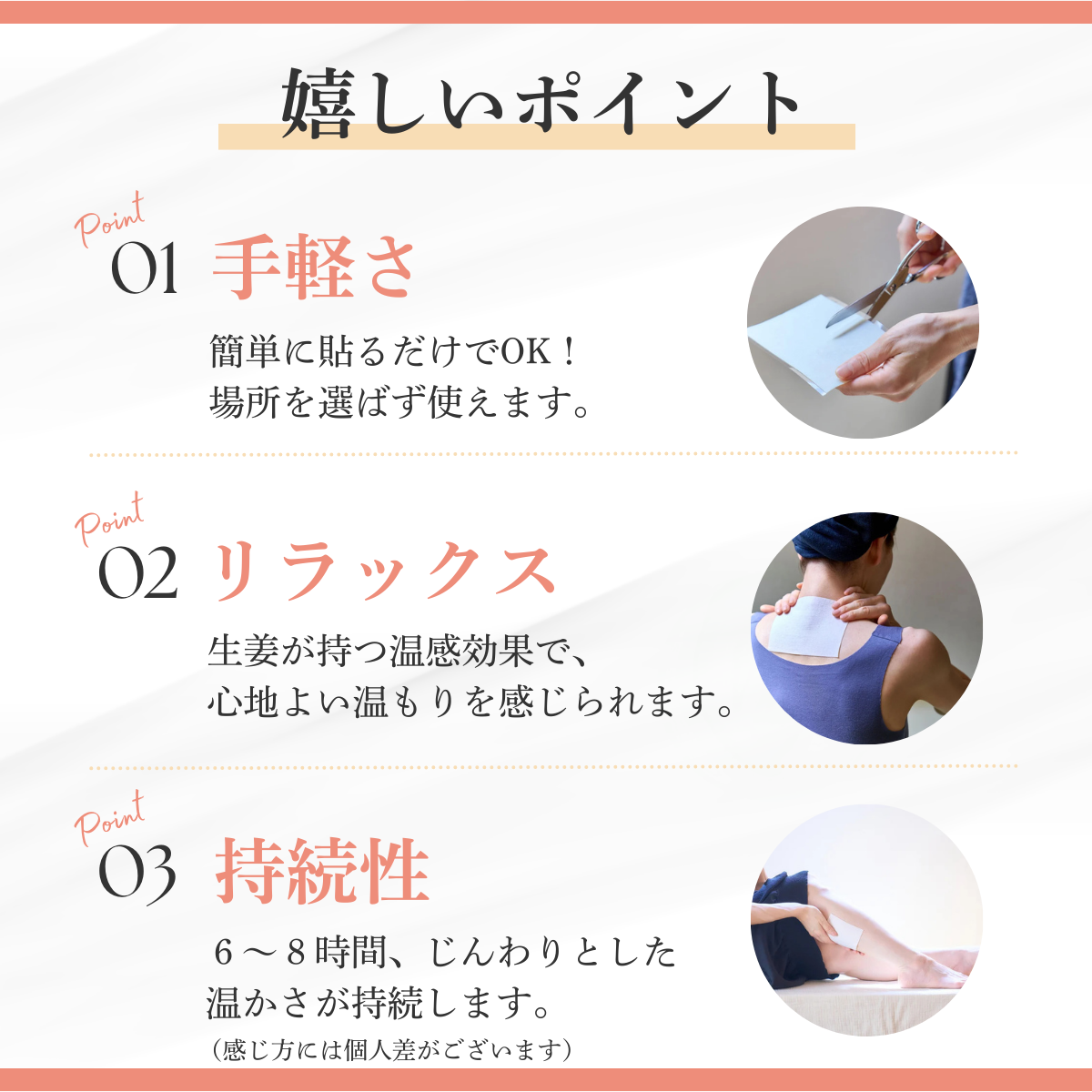 深呼吸しながらゆっくりと香りを楽しみ、身体の緊張をほぐしながら「眠りスイッチ」をオン。