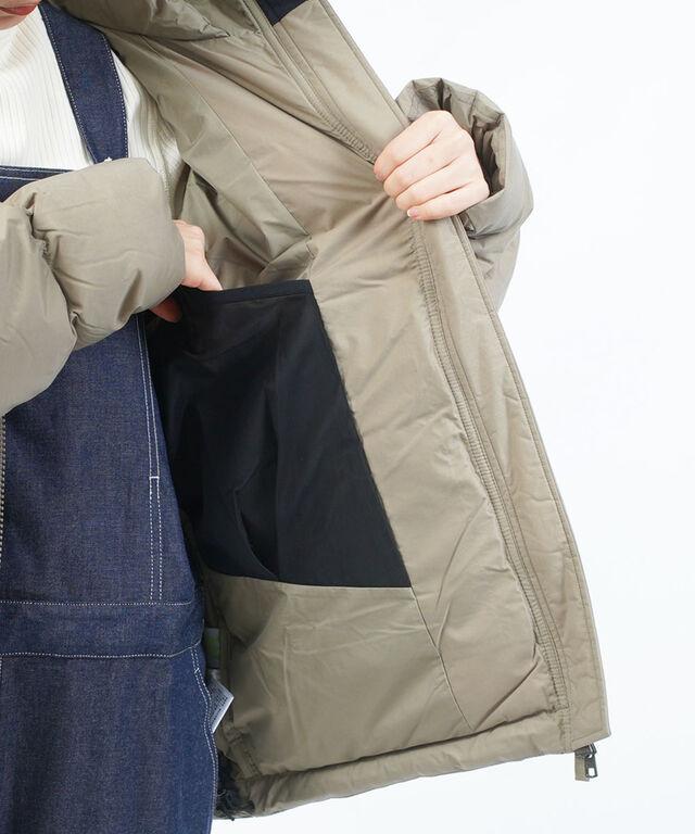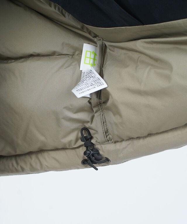 【素材】表地:ナイロン100%、中綿:ダウン72%、レーヨン20%、フェザー8%、裏地:ナイロン100%(コーティング等樹脂加工)