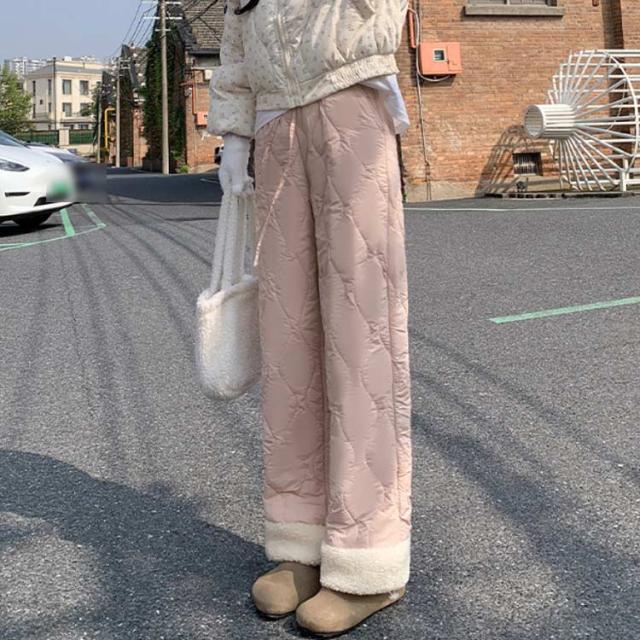 防寒 中綿 裏起毛パンツ 中綿入り 波型 キルティングパンツ 軽量 キルト ワイドパンツ ダウンパンツ あったかパンツ 暖パン 中綿パンツ あったか 暖かい 真冬 ボトムス 裏起毛 冬-63
