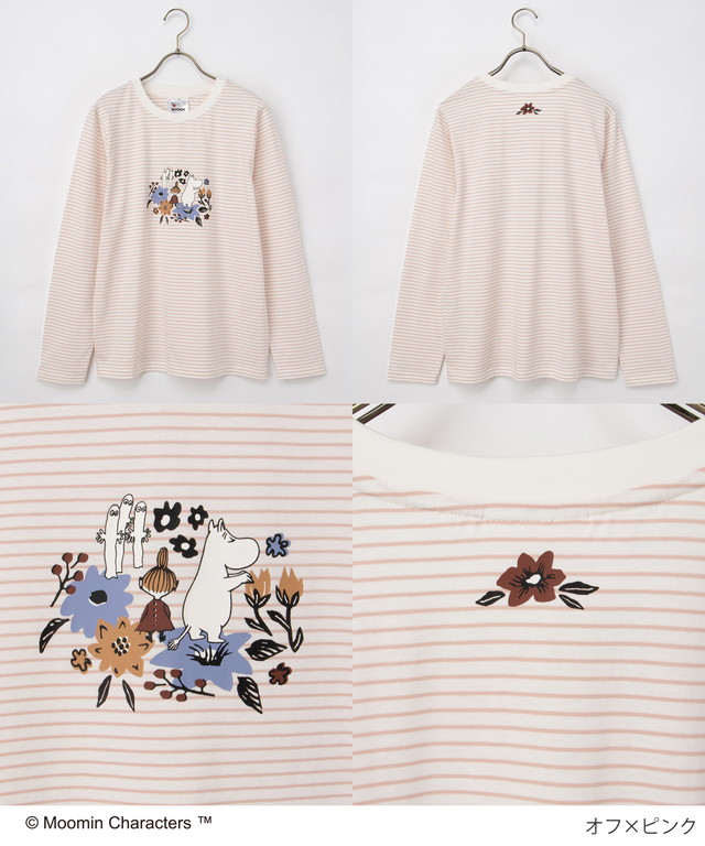 ムーミンと仲間たちのプリントや刺繍がおしゃれなデザイン。
