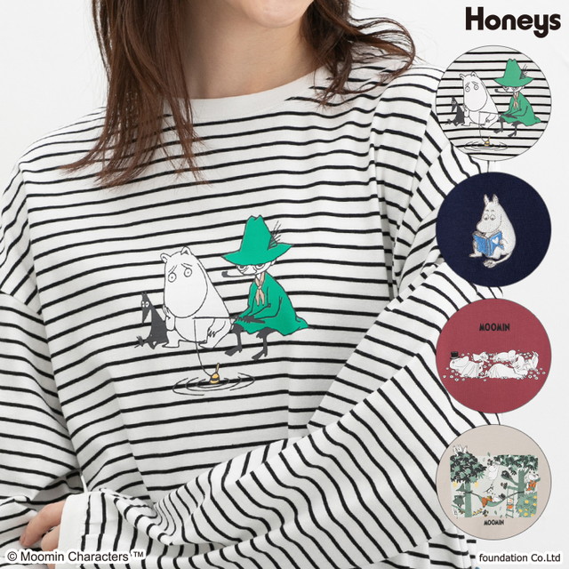 トップス チュニック カットソー 長袖 コットン 綿 Tシャツ ロンT 長袖Tシャツ ムーミン キャラクター レディース Honeys ハニーズ ムーミン/長袖チュニック