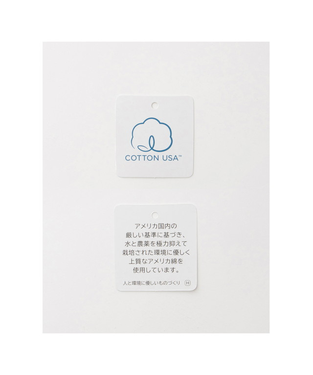 アメリカ国内の厳しい基準に基づき、水と農薬を極力抑えて栽培された、環境にやさしく着心地もよいUSAコットン100%素材。