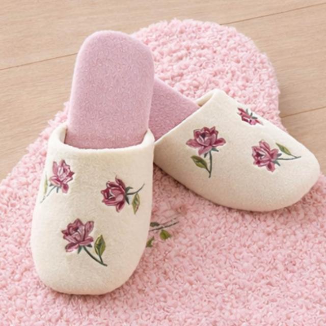 ふんわりと優しいローズピンクのスリッパです。主張しすぎない美しさで日常を華やかに彩ってくれるデザインです。やわらかな履き心地と落ち着いたデザインなので、リビングや寝室などお部屋履きにもおすすめのスリッパです。