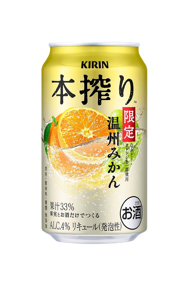 | 本搾りチューハイ 温州みかんは、果実とお酒だけでつくる、旬の温州みかんを丸ごと搾り、甘味と酸味のバランスが楽しめながらすっきりとした後味の特別なおいしさ。 「本搾りチューハイ」は、果実とお酒だけでつくる、果実そのままのおいしさを楽しめるチューハイシリーズです。 |