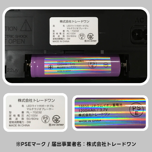 LEDライト付ポータブルマルチラジオプレーヤー |
