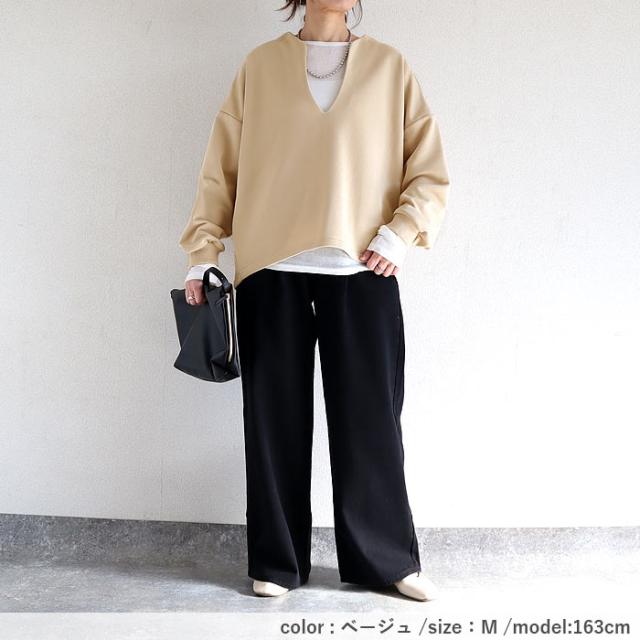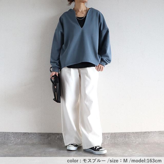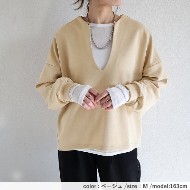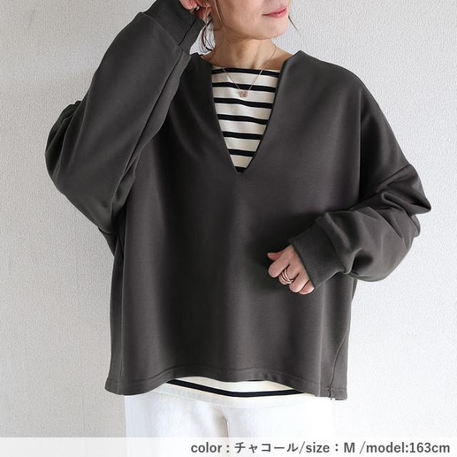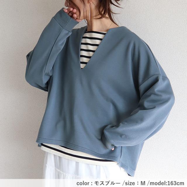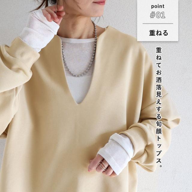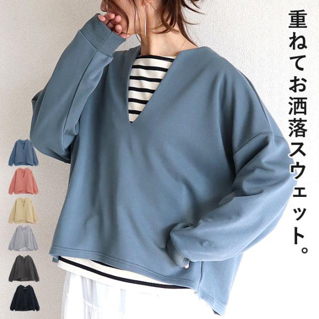レディース 女性 トップス スウェット 長袖 Vネック ドロップショルダー 透け感なし レイヤード 重ね着 ゆったりシルエット すっきり見え トップスコーデ M L 黒 ブラック 黒色 グレー 灰色 ベージュ ブルー 青 青色 ピンク 桃色 カラバリ 色展開 定番カラー 無地 ワンカラー 30代 40代 50代 60代 大人 おしゃれ オシャレ お洒落 カジュアル ナチュラル ベーシック かわいい カワイイ 可愛い キレイ きれいめ 綺麗め 高見え 上品 シンプル 旬 トレンド 楽 楽ちん らくちん ラクチン デイリー デイリー使い デイリーコーデ 普段使い オンオフ兼用 休日コーデ オフィス 通勤 通学 ワンマイル ワンマイルウェア 春 夏 秋 冬 春夏 秋冬 SALE セール uricca ウリッカ うりっか