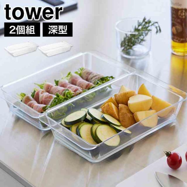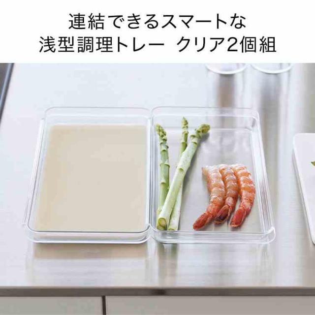 山崎実業 電子レンジ対応連結できる洗いやすい下ごしらえ調理トレー 連結 2個組 タワー tower 10336 クリア 公式 バット 食洗機対応 浅型 下ごしらえ トレー 電子レンジ対応 色移りしにくい 耐熱 耐冷 日本製 衣付け 揚げ物 トレイ 下味 調理トレー