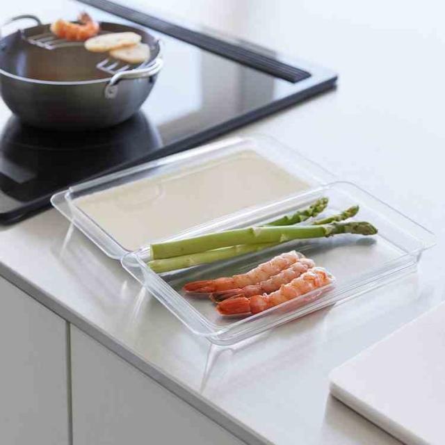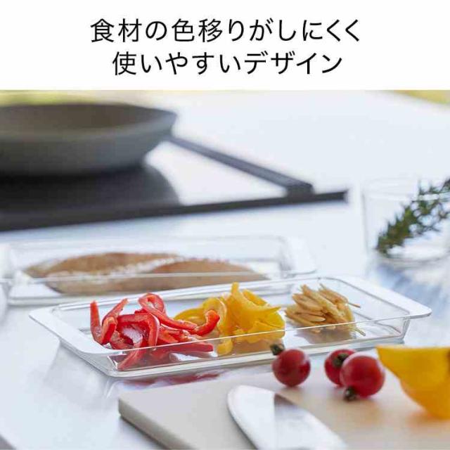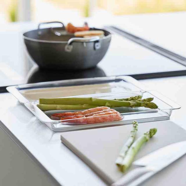 連結できて便利な浅型調理トレー2個組です。食材の色移りがしにくく、使いやすいデザインです。トレー同士はフチで連結できる便利な設計で、調理台を汚さず食材を移せます。持ち運びに便利な取っ手付き。食洗機OK。電子レンジOK。冷凍庫OK。