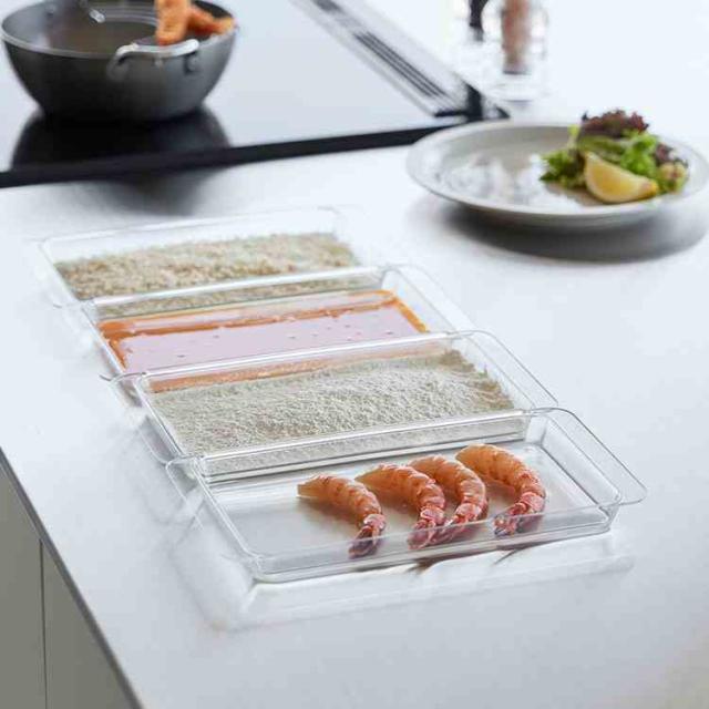 ![]() ![]() 連結できてスマートな浅型調理トレー2個組 下ごしらえからレンジ調理まで。これひとつでマルチに活躍する調理トレーです。 ![]() 食材の色移りがしにくく、使いやすいデザイン 食材の色やニオイが残りにくい素材なので、パプリカやニンジンなどの鮮やかな食材も気兼ねなく扱えます。連結機能とコンパクトなサイズ感で調理スペースを広く使えます。 ![]() トレー同士はフチで連結できるので調理台を汚さず食材を移せます 連結できる便利な設計により、「パン粉」や「液だれ」が調理台に落ちるのを防ぎます。「小麦粉→卵液→パン粉」といった揚げ物の工程も、調理スペースを汚さないので、後片付けの時間も大幅に短縮できます。 ![]() 電子レンジ対応!持ち運びに便利な取っ手付き 取っ手付きで持ち運びやすく、電子レンジの使用もスムーズ。そのままラップをして冷蔵庫へ移動させることも可能です。 ![]() 食洗機で丸ごとスッキリ ベタつく油汚れも食洗機ですっきり落とせます。調理後の面倒な洗い物の手間を省けるため、忙しい毎日の家事負担を軽減します。 ![]() ![]() ![]() ![]() ![]() ![]() ![]() ![]() Details 【電子レンジ対応連結できる洗いやすい下ごしらえ調理トレー 2個組】 連結できて便利な浅型調理トレー2個組です。食材の色移りがしにくく、使いやすいデザインです。トレー同士はフチで連結できる便利な設計で、調理台を汚さず食材を移せます。持ち運びに便利な取っ手付き。食洗機OK。電子レンジOK。冷凍庫OK。 ブランド名 tower / タワー JAN 4903208103367 品番 10336 サイズ 約W14×D25.9×H2.2cm 重量 約110g 素材 本体:ポリメチルペンテン 備考 耐熱:180℃、耐冷−40℃ 食洗機対応可、レンジ対応可 生産国 日本 ご注意 ※表記サイズより、多少の誤差があることがございます。 ※商品の画像はできる限り実物に近づけるよう配慮しておりますが、お使いのモニターやご覧になる環境によりましてはカラーの見え方に差が出る場合がございます。ご了承くださいませ。 関連キーワード Tower Microwave-Safe, Connectable, Easy-To-Clean Prep Trays ? Shallow, Set Of 2 洗いやすい 取っ手付き 持ち手付き パン粉 卵液 小麦粉 餃子作り ハンバーグ 漬け込み 冷蔵庫保存 効率化 時短家事 収納 コンパクト 食洗機で洗える バット 山崎実業 電子レンジ対応連結できる洗いやすい下ごしらえ調理トレー 連結 2個組 タワー tower 10336 クリア 公式 バット 食洗機対応 浅型 下ごしらえ トレー 電子レンジ対応 色移りしにくい 耐熱 耐冷 日本製 衣付け 揚げ物 トレイ 下味 調理トレー 2個セット 透明 調理器具 蓋なし 調理台が汚れにくい 汚れ防止 掃除が楽 キッチン用品 便利グッズ 連結 コンパクト スマート 四角 長方形 スタイリッシュ ナチュラル モダン 無地 北欧 シンプル おしゃれ オシャレ お洒落 モノトーン スマート 新生活 引越し 引っ越し 新築 結婚 祝い 新居 キッチン 台所 食堂 収納 カフェ オフィス マンション アパート 一人暮らし ひとり暮らし 1人暮らし 二人暮らし ふたり暮らし 2人暮らし ファミリー 家族 一戸建て 戸建 賃貸 スリム 省スペース コンパクト 小さめ 便利 インテリア インテリア雑貨 収納雑貨 生活雑貨 整理整頓 整理用品 スペース 有効活用山実 やまじつ ヤマジツ やまざきじつぎょう たわー towerシリーズ ブランド インテリアブランド | |||||||||||||