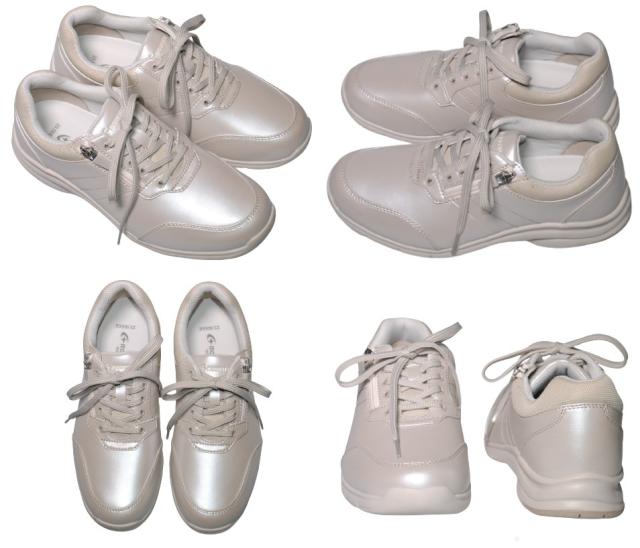 World March WL3601 ウォーキングシューズ ワールドマーチ 22cm〜25cm EEEE レディース シルバー ファスナー レース 衝撃吸収 幅広